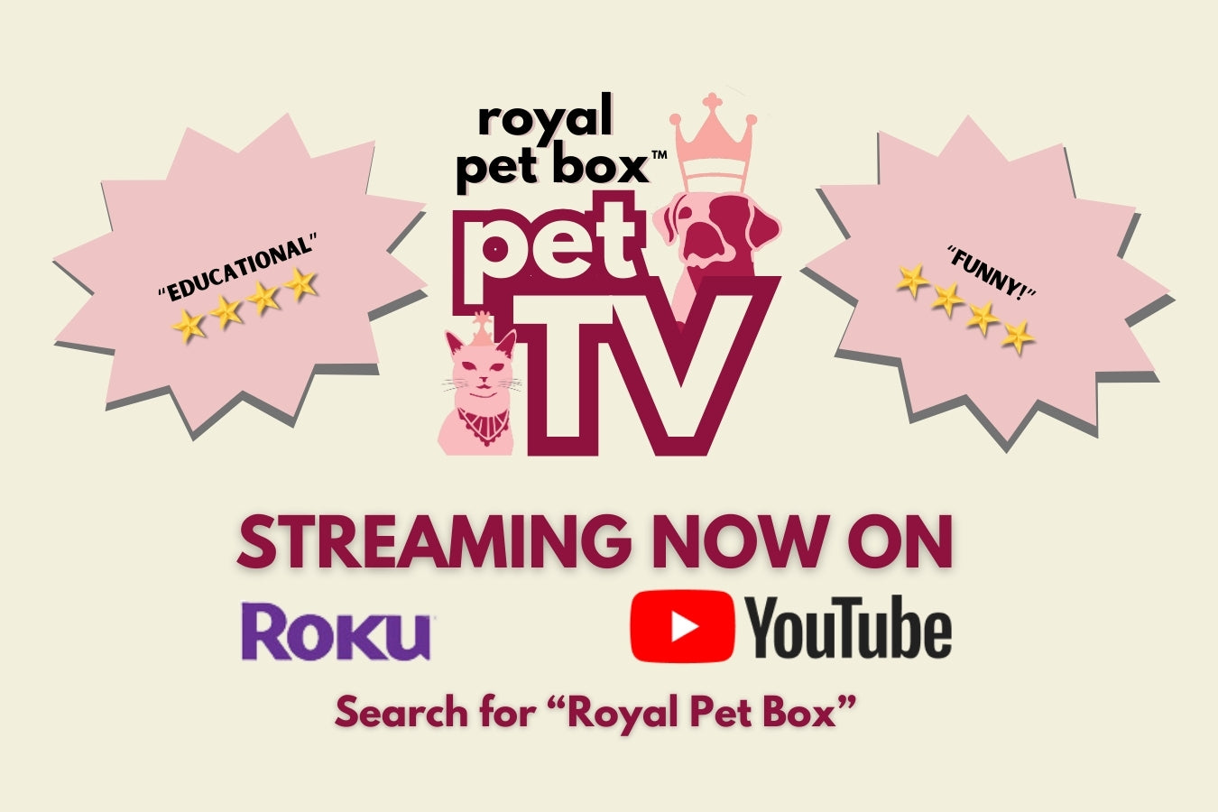 Welcome to Royal Pet Box Pet TV – your go-to destination for entertaining and educational content about animals! Whether you're curious about feline history, laughing at imaginative scenarios like aliens with pets, or learning your Animal ABCs, we've got something for every pet lover. Discover our full channel by searching Royal Pet Box on Roku or visiting us on YouTube. Join our community and explore the wonderful world of pets through our original programming. Submit episode ideas here!
